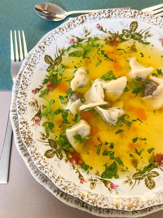 Do Balatonu wróciłem po kilku latach i z przyjemnością mogę napisać jedno – ten lokal ma się bardzo dobrze. Menu wciąż oferuje wiele ciekawych propozycji i widać, że kuchnia nadal trzyma wysoki poziom. Tym razem na początek sięgnąłem po rosół z kołdunami. Delikatne ciasto i przede wszystkim bardzo udany farsz sprawiają, że to naprawdę świetnie przygotowana klasyka. Taki rosół przypomina, że w prostych daniach liczy się przede wszystkim jakość wykonania.