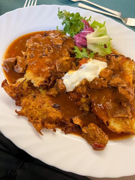 Na drugie danie postawiłem na tutejszy klasyk, czyli placek po balatońsku. Dobrze przygotowane placki ziemniaczane w połączeniu z aromatycznym sosem tworzą bardzo satysfakcjonującą całość. To danie, które po prostu daje radość z jedzenia. Wizyta po latach tylko utwierdziła mnie w przekonaniu, że Balaton wciąż jest miejscem, do którego warto wracać.
